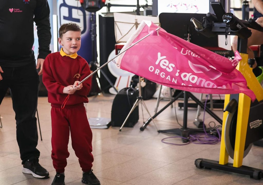 The NI Transplant team began their awareness-raising virtual cycle between Belfast and Dublin at Grand Central Station, with young campaigner Dáithí Mac Gabhann waving the flag to set them on their way.